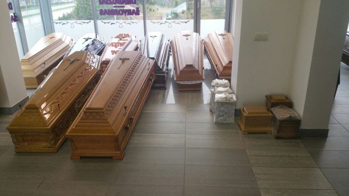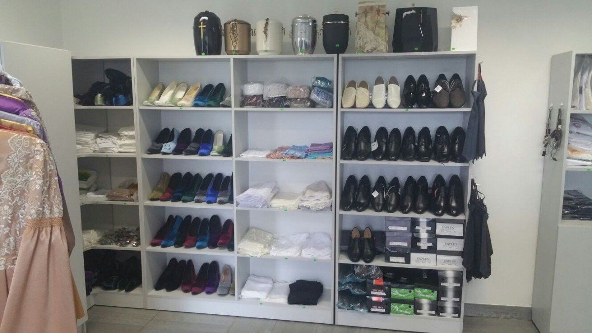 Laidojimo reikmenų parduotuvėje galime pasiūlyti didžiausią Alytuje vyriškų bei moteriškų įkapių pasirinkimą. Taip pat didžiausią įvairių karstų pasirinkimą. Prekiaujame urnomis, laikinaisiais kryžiais bei įvairia laidojimui reikalinga atributika.
